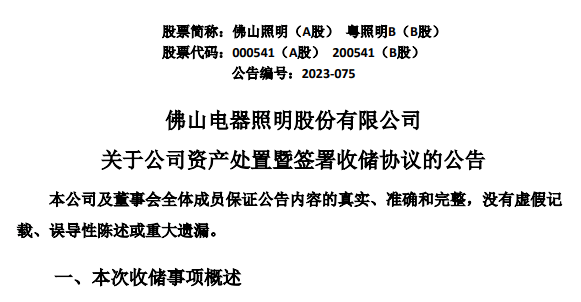 【预计净收益约10.68亿元,佛山照明拟将汾江北路地块交给属地政府挂账收储】